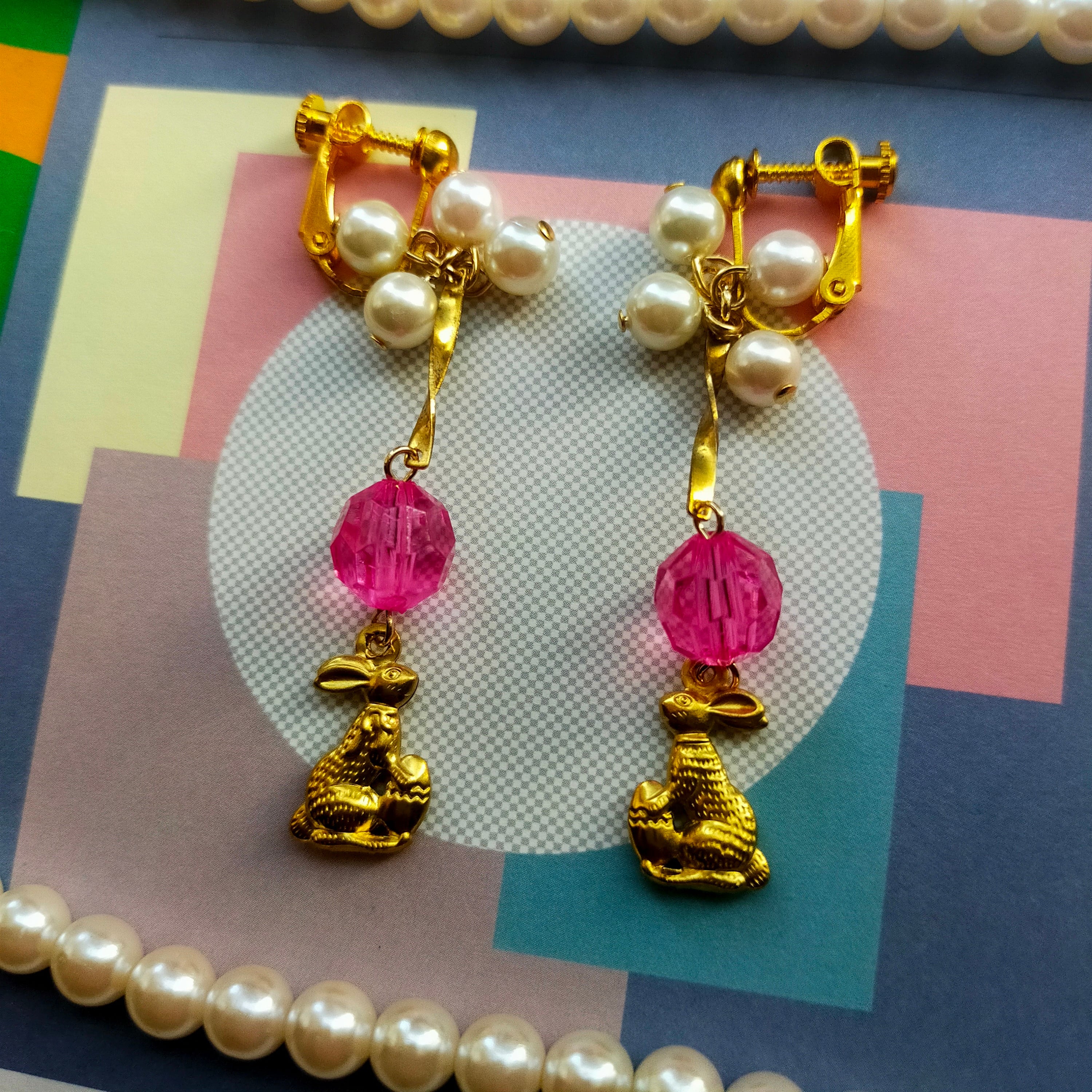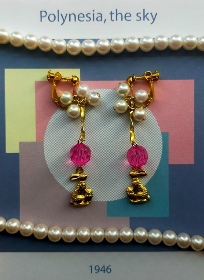 japan vintageの樹脂パール、真鍮、アクリルビーズを使用しております。