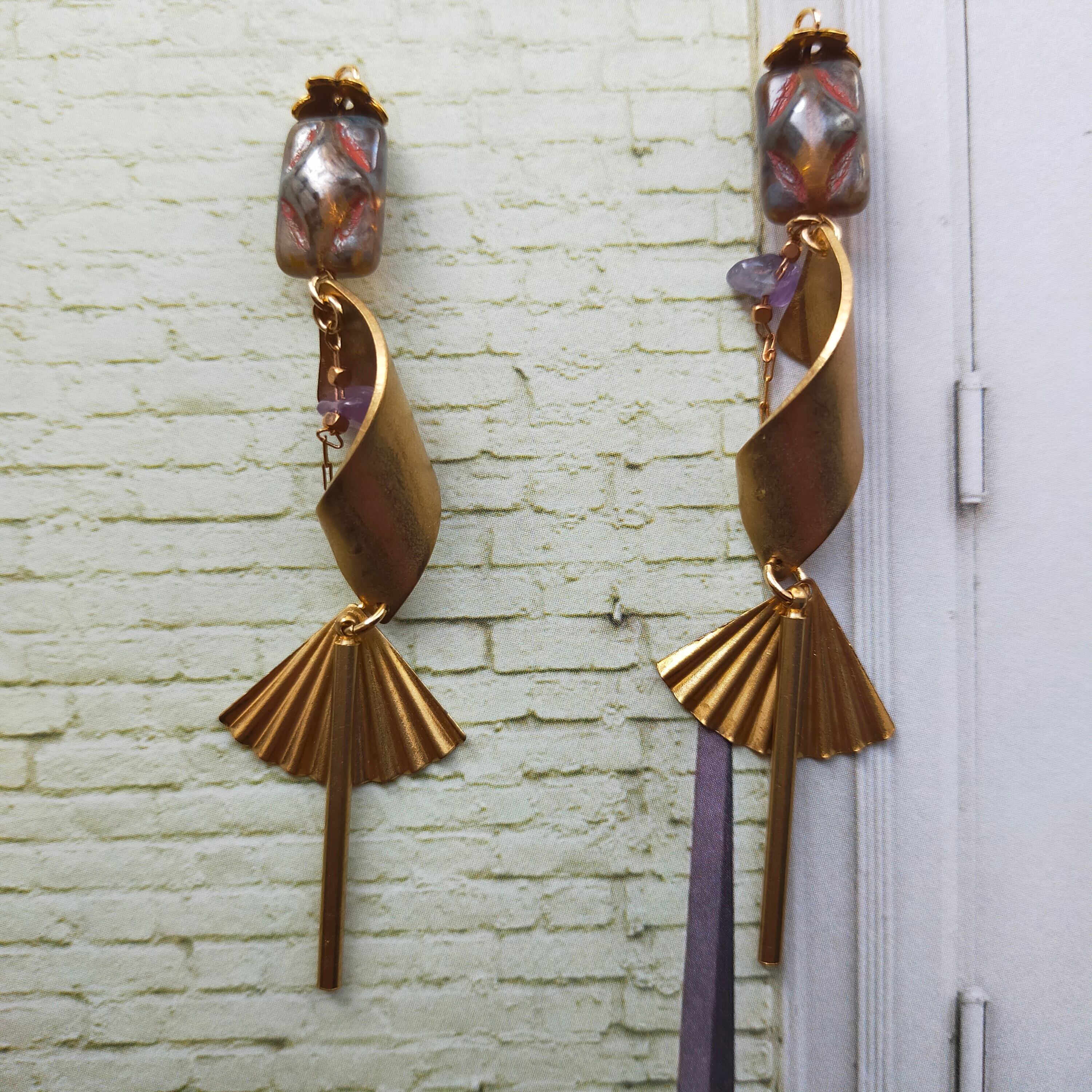 此方は金メッキ、チェコビーズ、天然石チェーン、真鍮を使用しております。