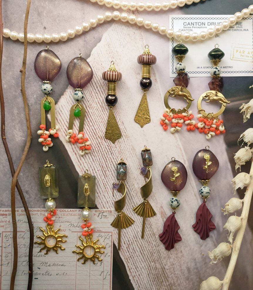 此方はチェコビーズ、金メッキ、ダルメシアンジャスパー、アクリルビーズ、真鍮、勾玉ビーズを使用しております。