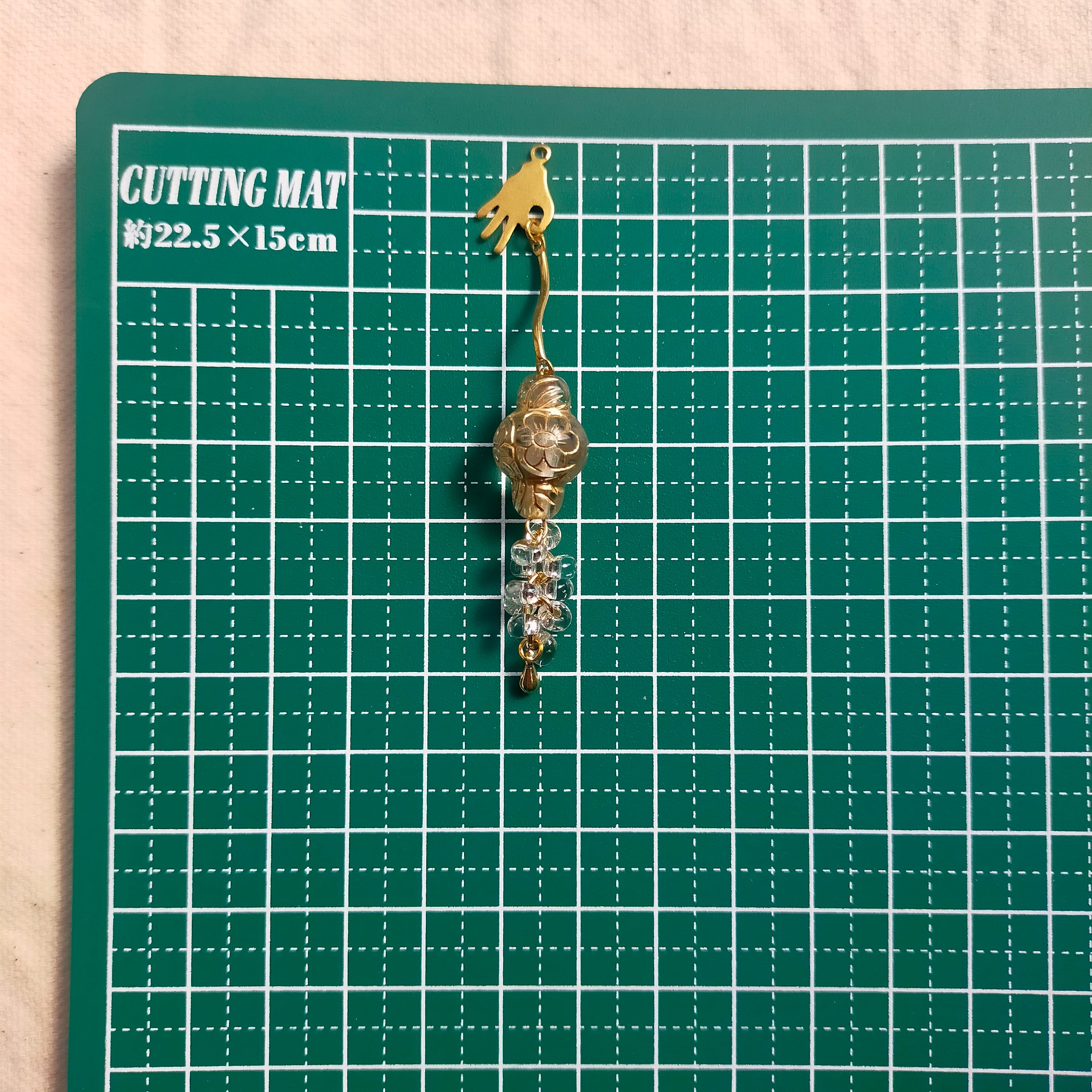 真鍮、アクリルパーツ、硝子ビーズを使用した耳飾り