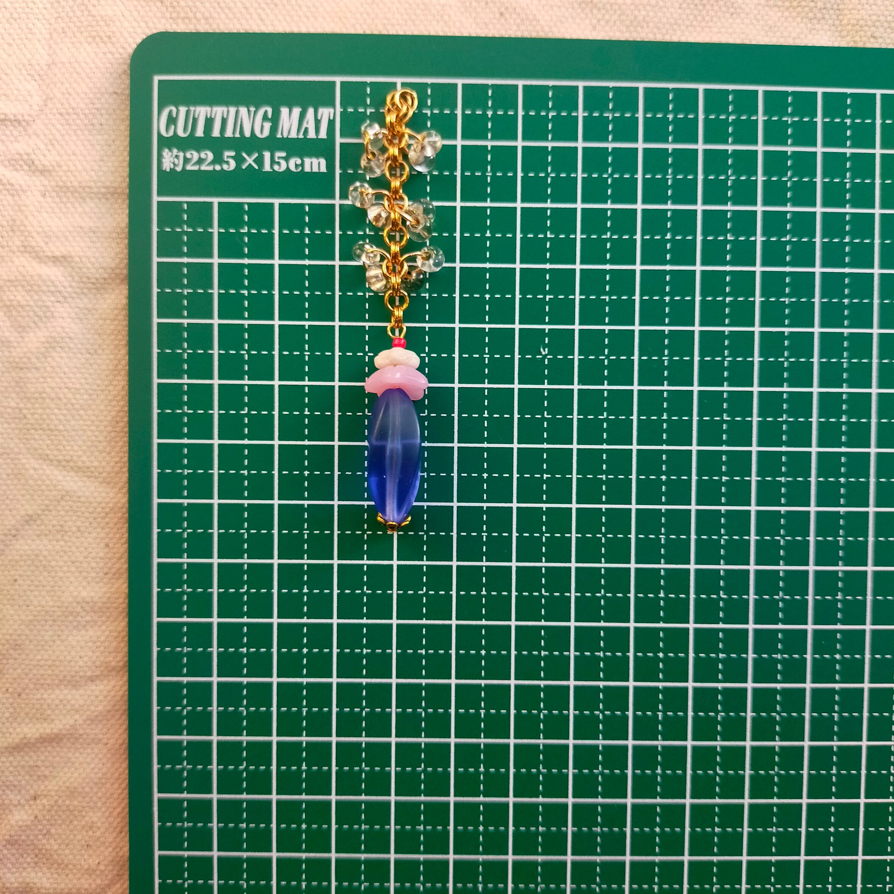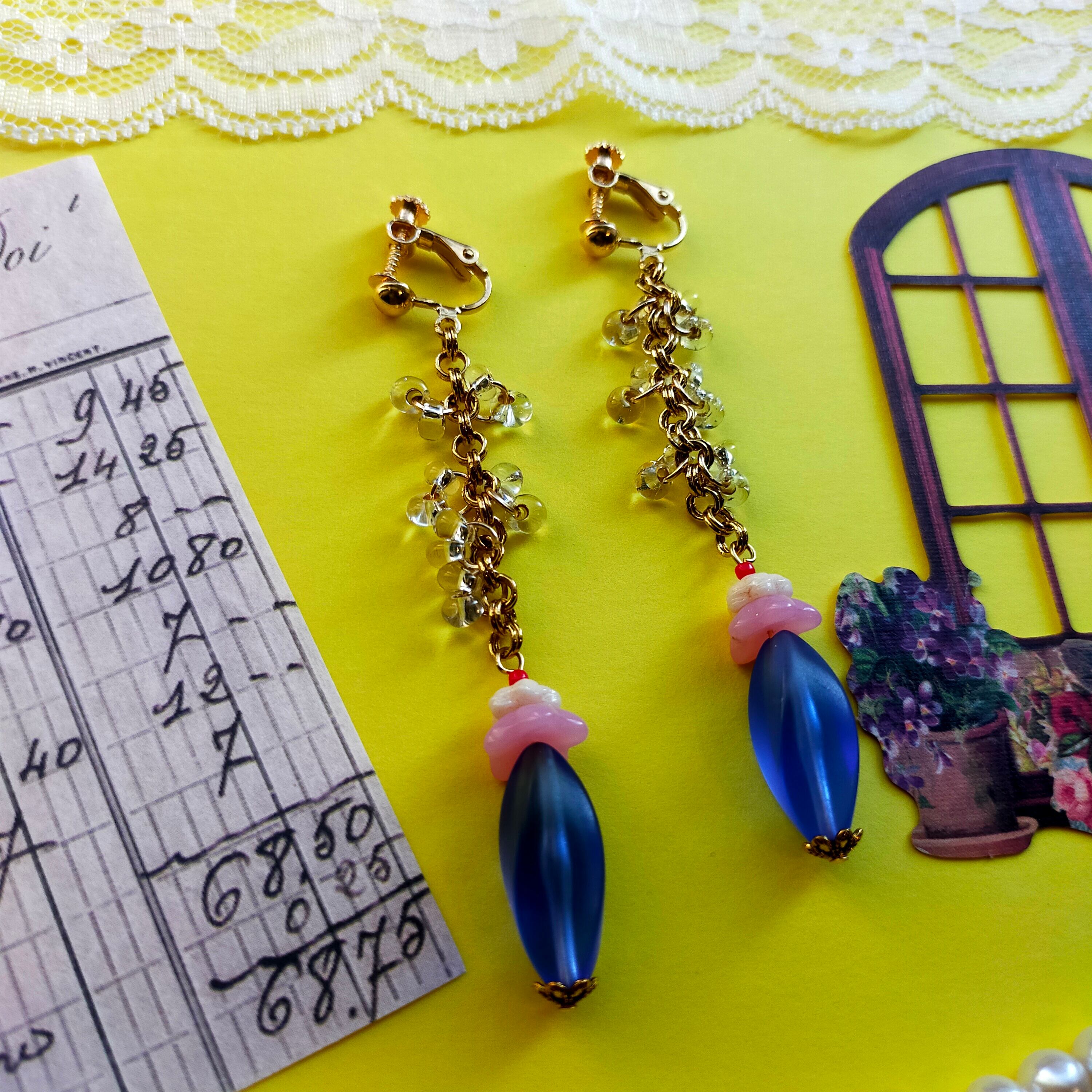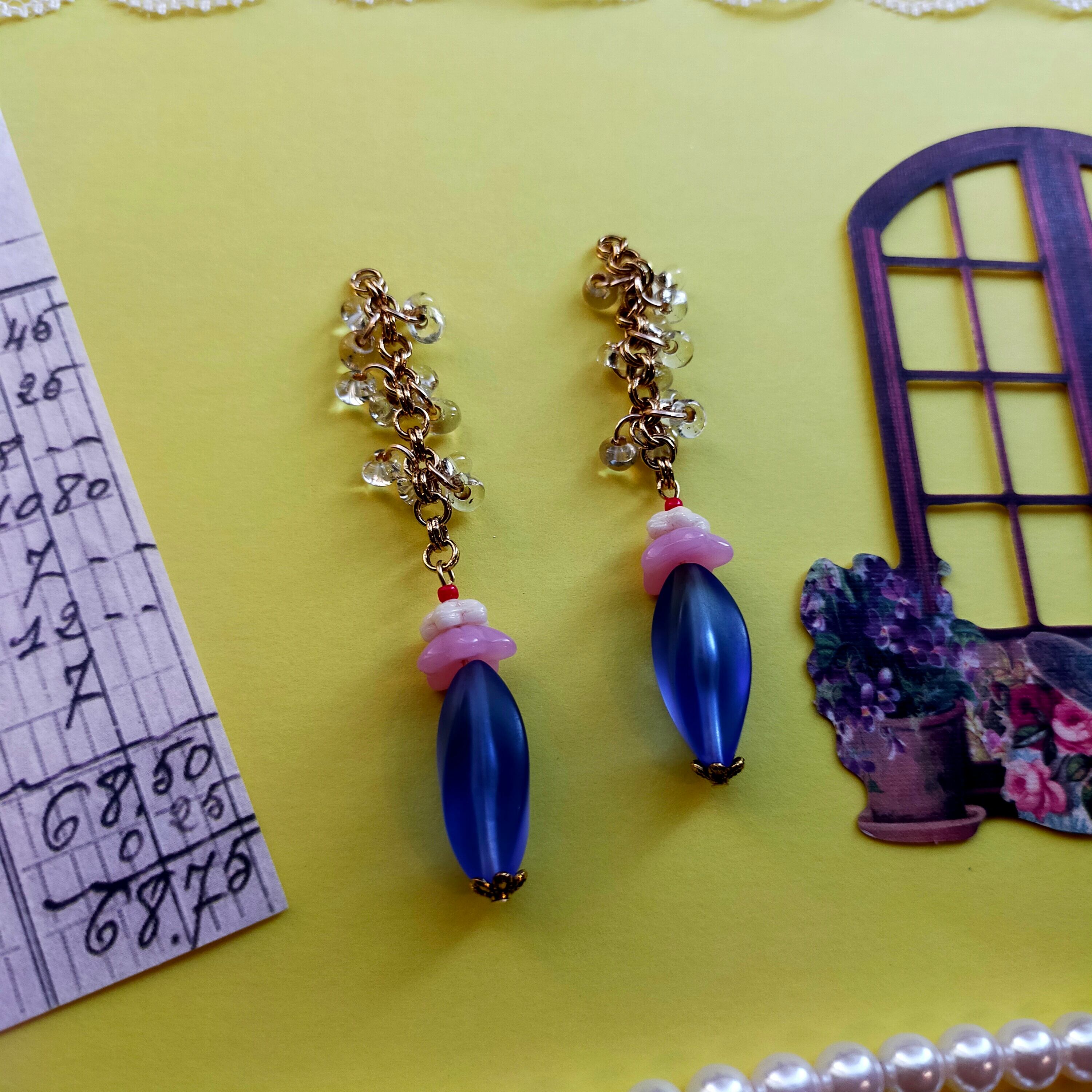 真鍮のチェーン、勾玉ビーズ、チェコビーズ、TOHOビーズさんのアクリルビーズを使用した耳飾り