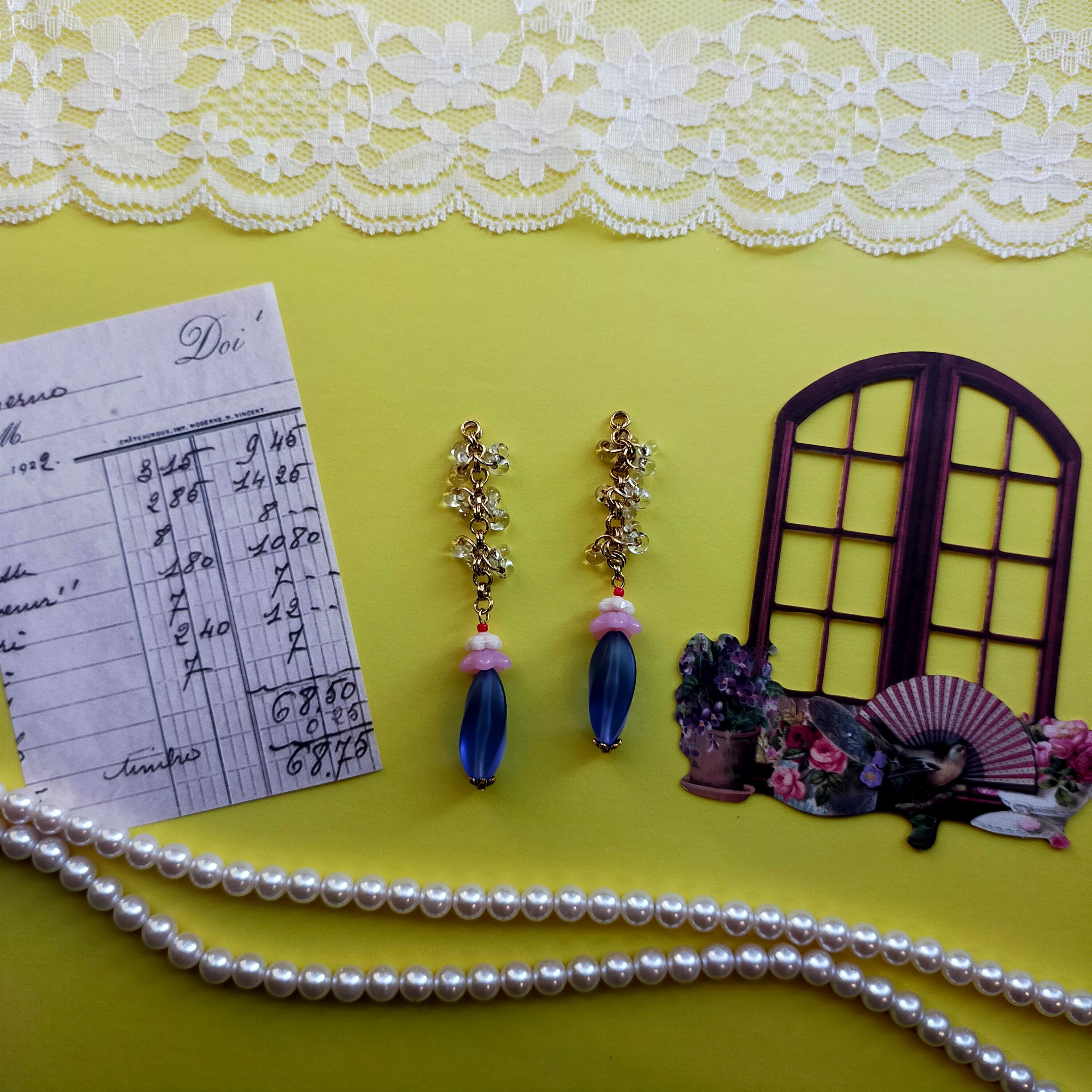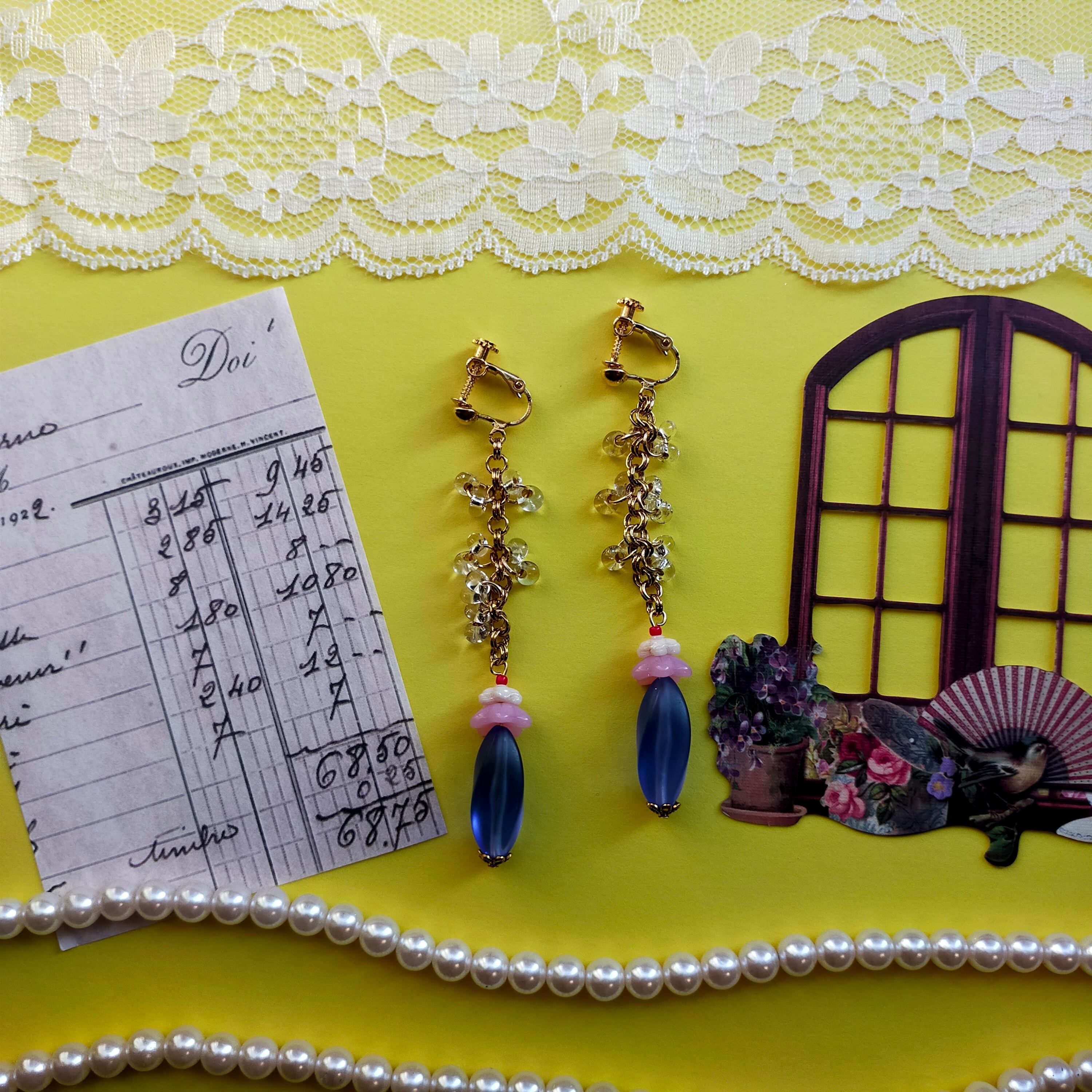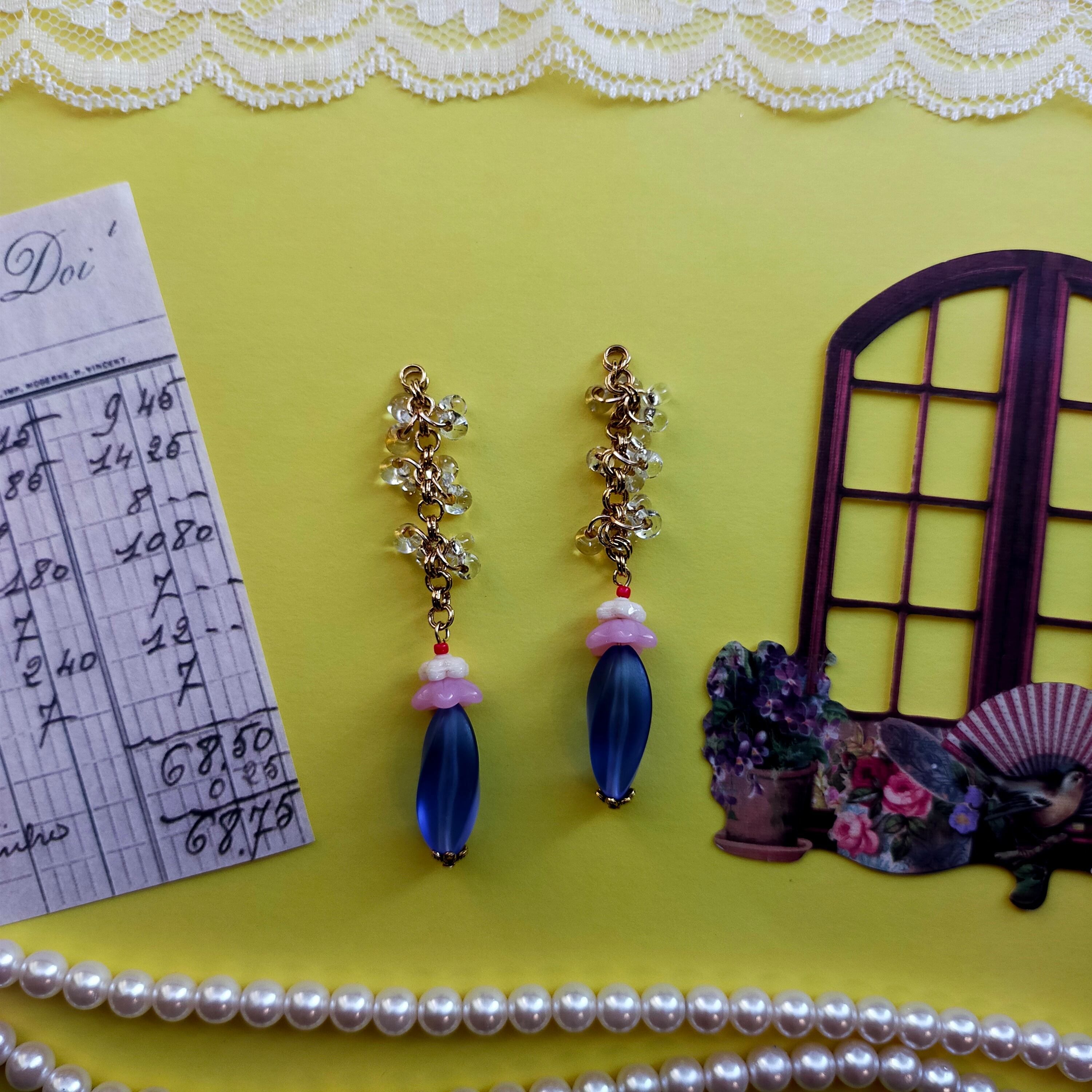 真鍮のチェーン、勾玉ビーズ、チェコビーズ、TOHOビーズさんのアクリルビーズを使用した耳飾り