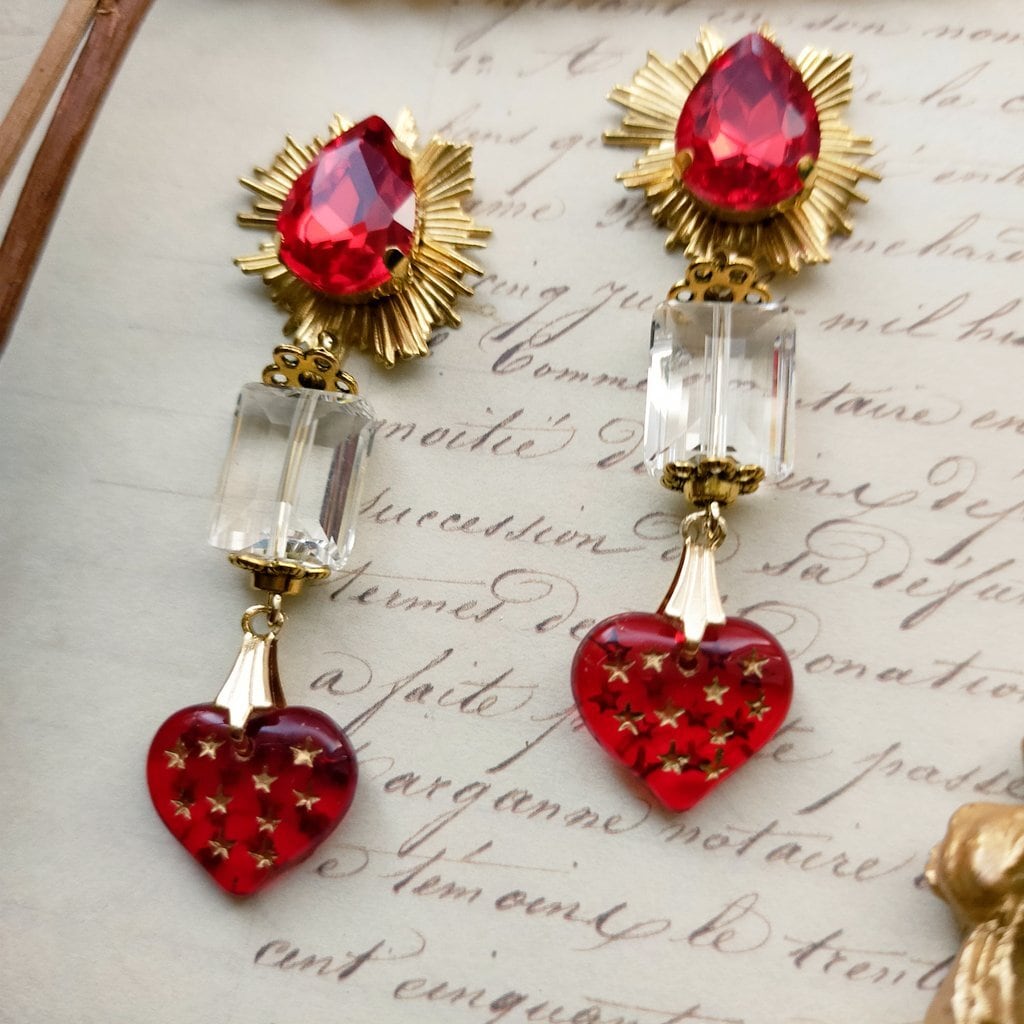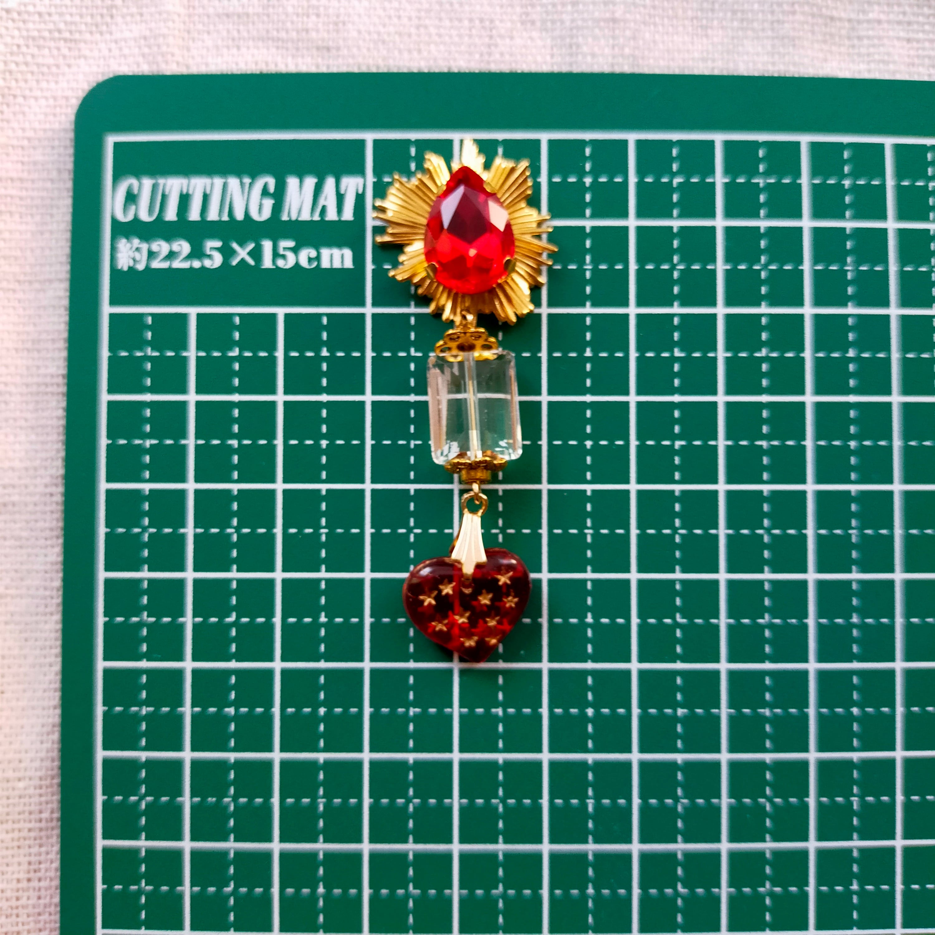 此方は硝子パーツ、金属製パーツ、チェコビーズ、真鍮、ビジューを使用した耳飾りでございます。