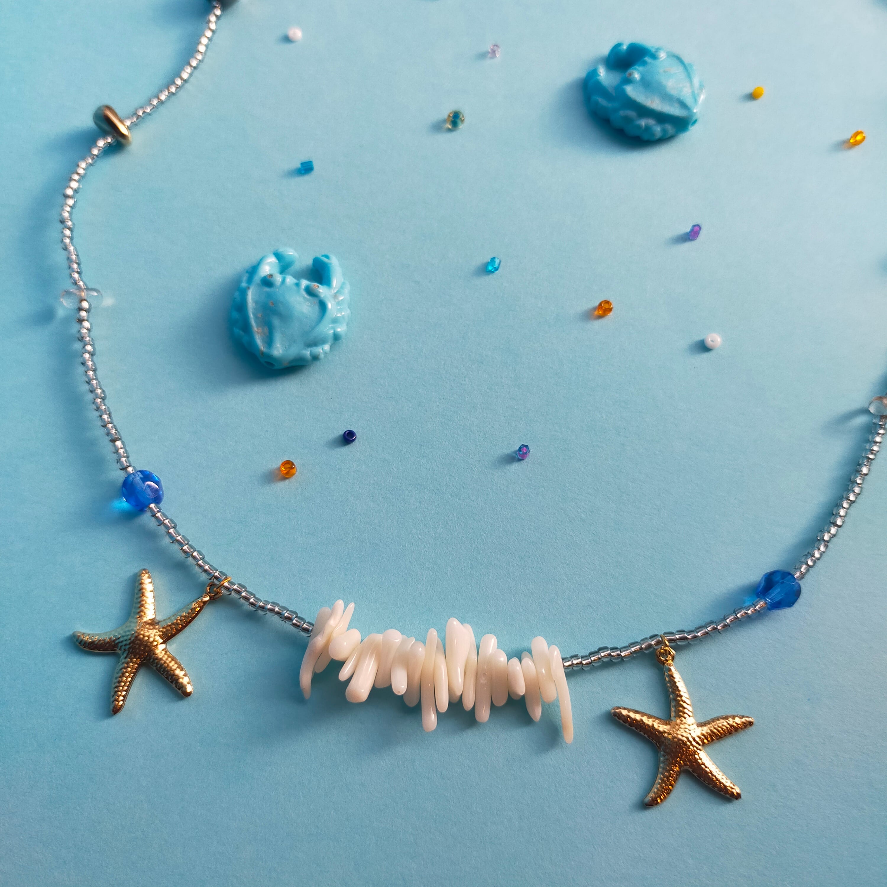 チェコビーズ、真鍮、珊瑚ビーズ、japan vintageの樹脂パールのNecklace