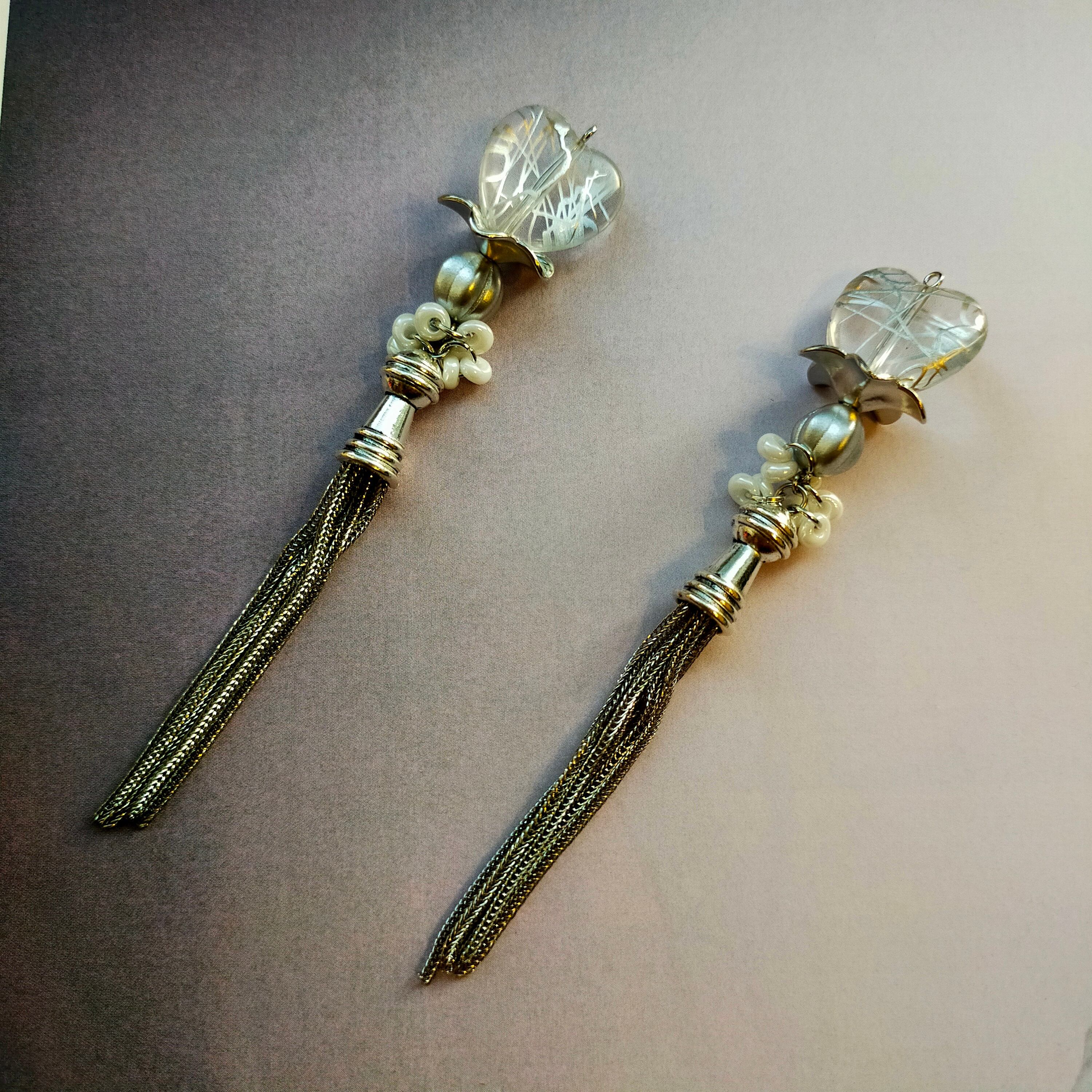 此方はアクリルパーツ、シルバーのチェコビーズ、シルバーパーツはアクリル、TOHOビーズさんの勾玉ビーズを使用しております。