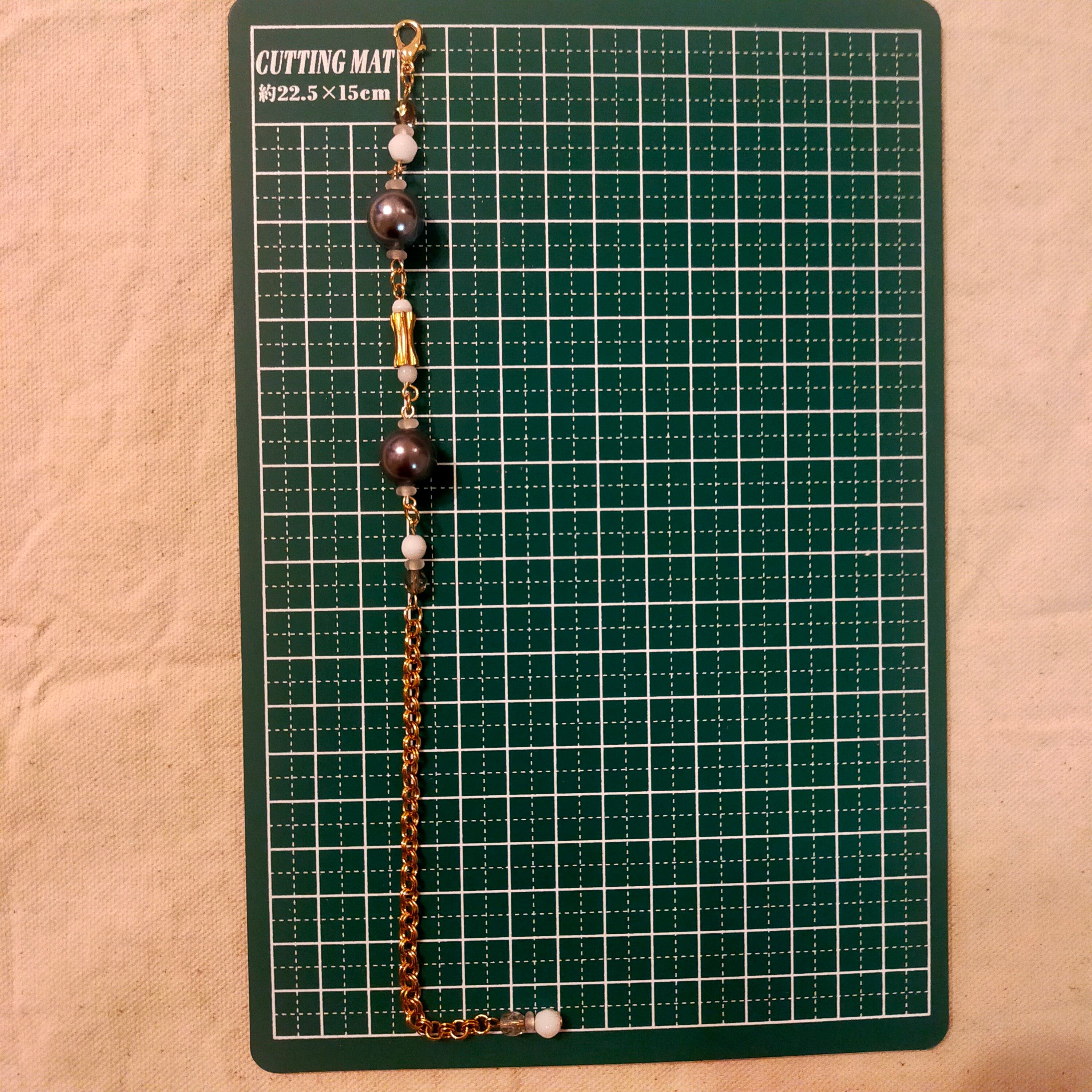 此方はjapan vintageの樹脂パール、真鍮、チェコビーズ、硝子ビーズを使用しております。