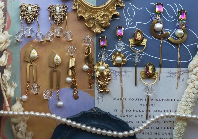 硝子ビジュー、真鍮、クリアアクリルビーズを使用しております
